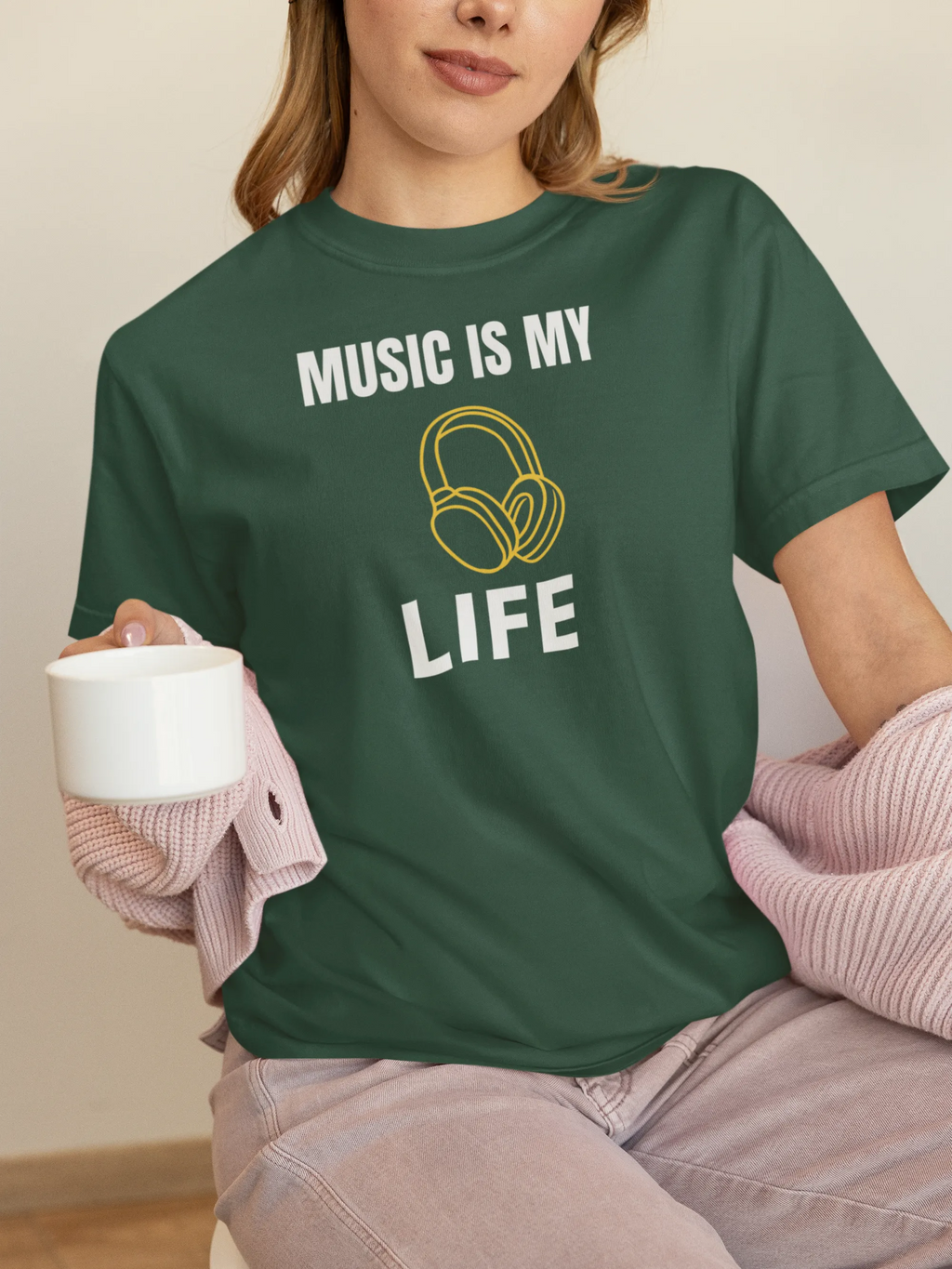 Looking for a comfortable and stylish women's regular fit to express your love for music? This premium cotton regular fit featuring a "music is my life" graphic is perfect ...Show More