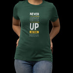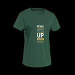 Never Give Up On Your Dream - Motivational Women's Graphic Top – Dream Big Style | Bottle Green | Regular Fit Tshirt | 180 GSM