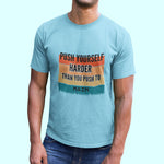 Push Yourself Harder Than You Push To Main - Motivational Graphic Shirt – Premium Casual Wear for Men | Sky Blue