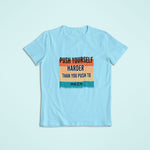Category: All products, Color: Sky blue, Developer, For Developers, Fullmoon Premium, Motivation, T-Shirts - push yourself harder than you push to main