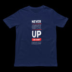 SKU: TSHIRT-NEVER_GIVE_UP_ON_YOUR_DREAM-210GSM-NAVY_BLUE-S