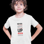 Never Give Up On Your Dream - Kids' Graphic Shirt – Dream Big | Motivational Style | White | Regular Fit Tshirt | 180 GSM