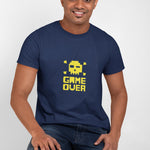 - Game Over - Stylish Graphic Round Neck - Modern Men's Essential | Navy Blue