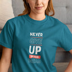 SKU: TSHIRT-NEVER_GIVE_UP_ON_YOUR_DREAM-240GSM-TEAL_BLUE-S